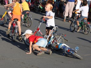 В пятницу на Комсомольской площади прошли детские гонки на велосипедах. Участвовали все: от трехколесных «малышей» до двухколесных «спринтеров». Главный приз, новенький велосипед, достался трехлетнему Ване Коршикову, приехавшему на соревнования почти на таком же, но более старом велосипеде. Остальные участники получили игрушки и море позитивных эмоций.