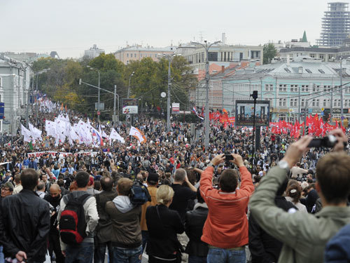 В Москве проходит третий «Марш миллионов», - сообщает «Лента.ру», корреспонденты которой ведут подробную хронику события.