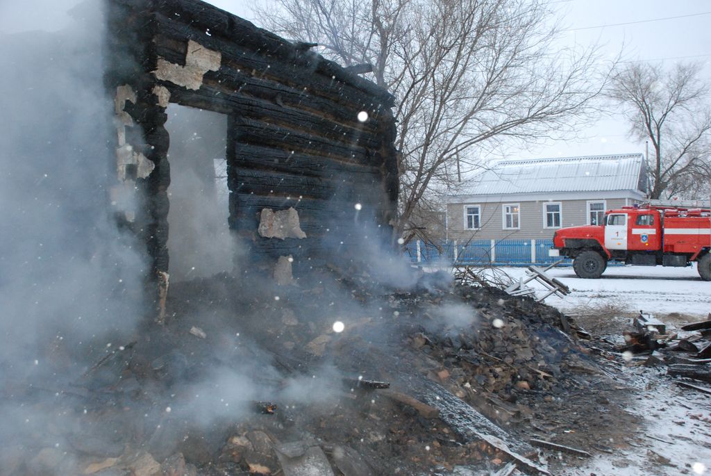 Сгоревший дом в селе Гирьял. Фото: МЧС России по Оренбургской области
