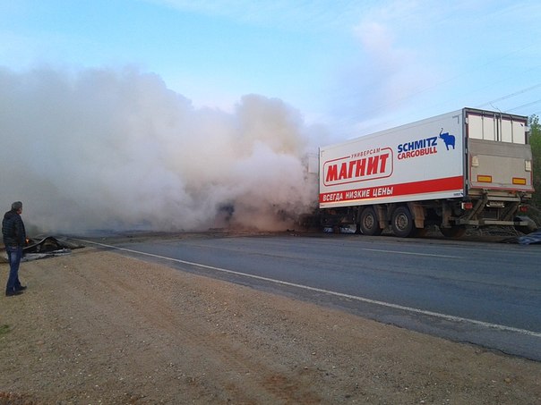 Сегодня, 13 мая, на трассе Оренбург – Самара сгорел большегруз, принадлежащий продуктовой торговой сети «Магнит».