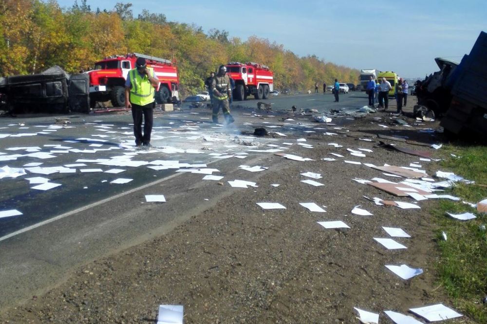 Предварительно установлено, что водитель ГАЗели начал выполнять обгон, выехал на полосу встречного движения и столкнулся с КамАЗом. От удара ГАЗель загорелась. Ее водитель погиб на месте происшествия, пассажир в тяжелом состоянии доставлен в больницу. Водитель большегруза также серьезно пострадал. Он находится в коме.