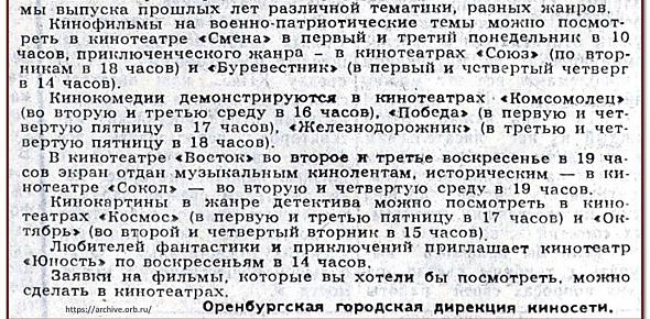 Новогодние каникулы в кинотеатре «Сокол» в Оренбурге 40 лет назад
